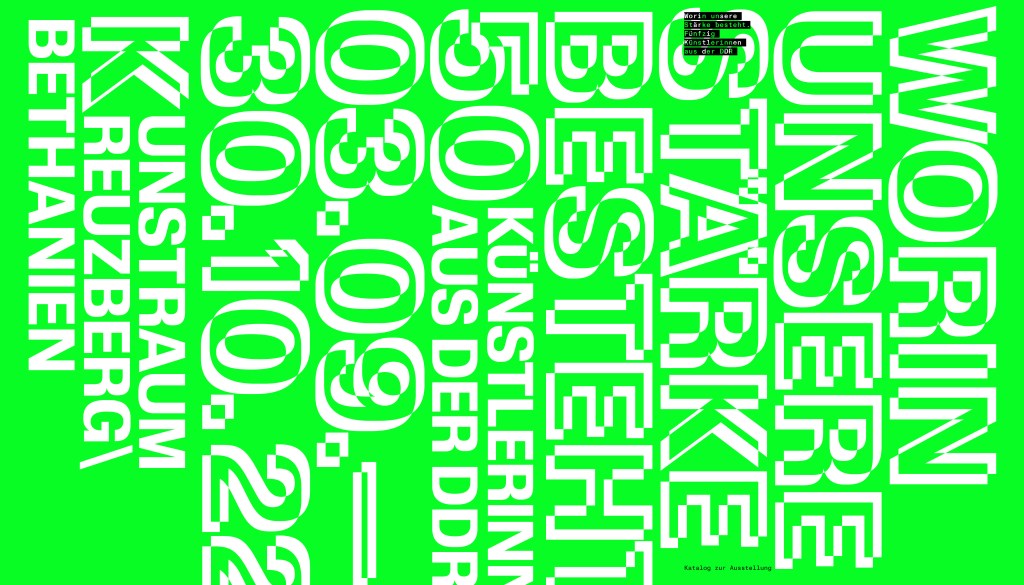 konzipiert von Andrea Pichl, Kuratorin der Ausstellung „Worin unsere Stärke besteht. 50 Künstlerinnen aus der DDR“, erschienen im DISTANZ Verlag