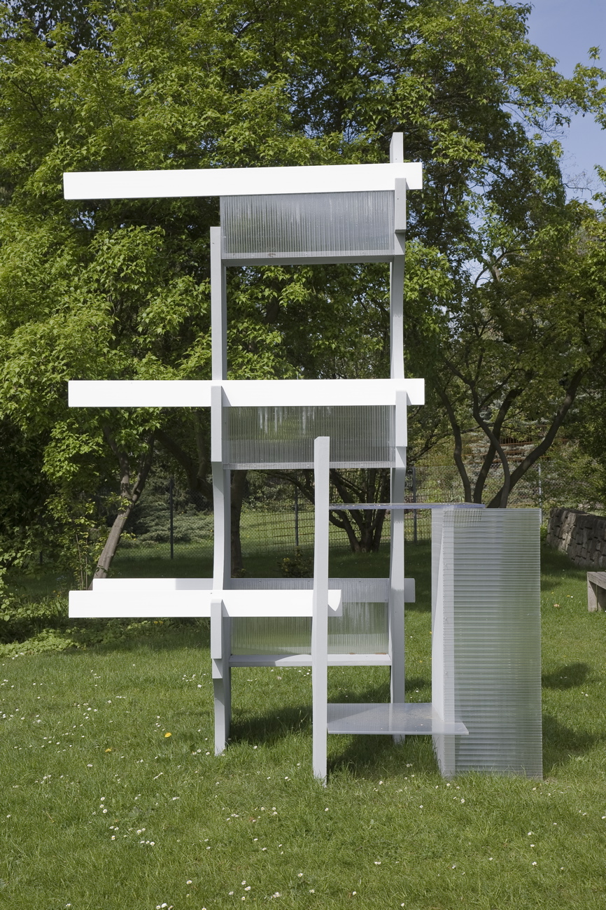 „Für immer und immer“ (For Ever and Ever) temporary sculpture at Mies van der Rohe House, Berlin, 2010 gabun, house paint, plastic boards 360 cm x 180 cm x 130 cm