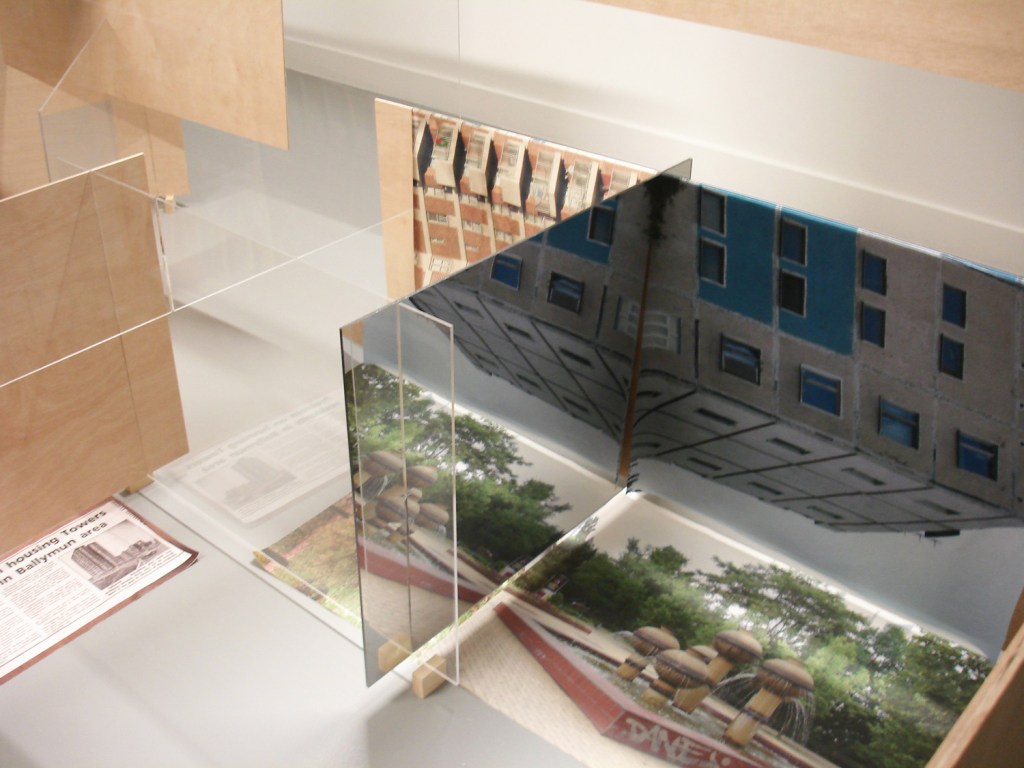 Plywood, printed canvas and satin, acrylglass, mirrors, projections
