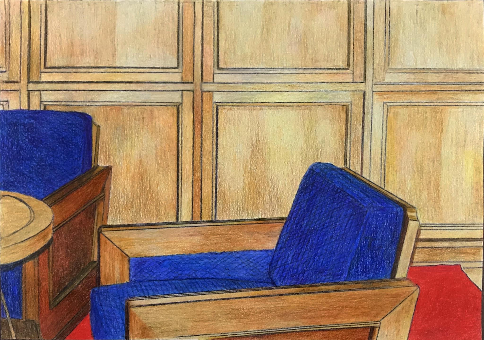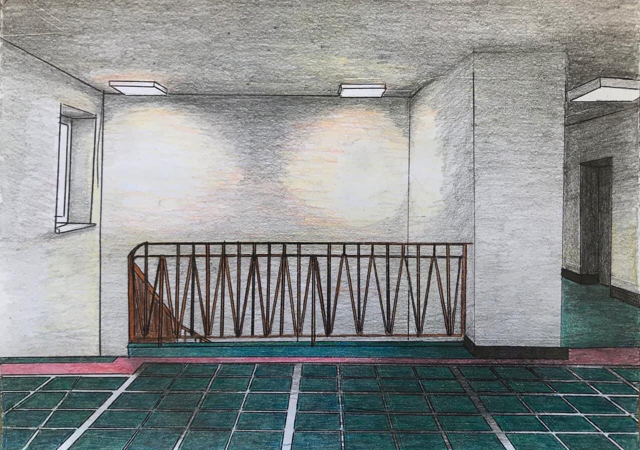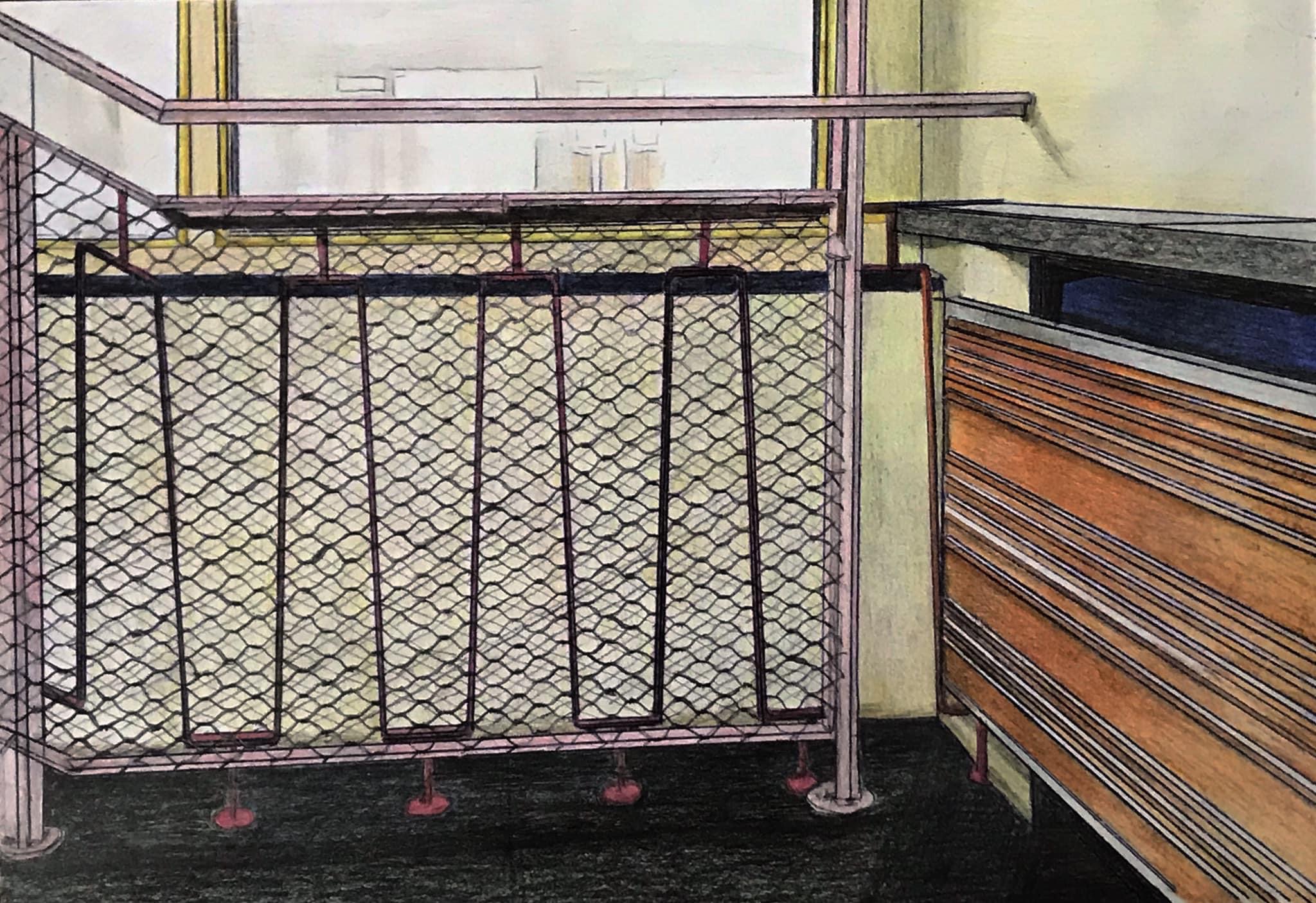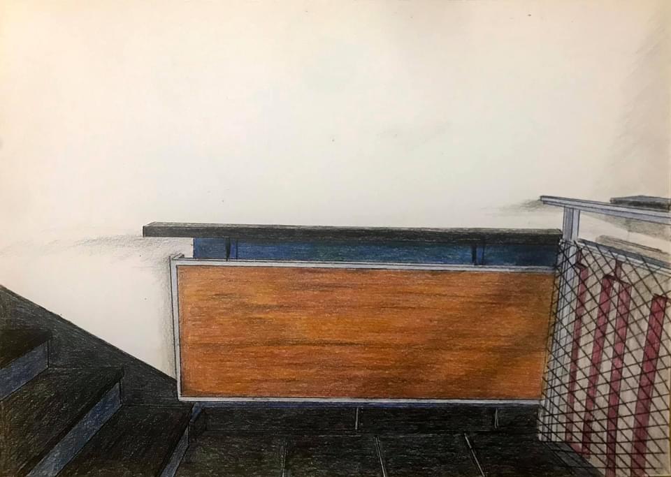 Die Zeichnungen gehören zu einer Serie von 30 Zeichnungen „Stasizentrale Nr. …“ und sind nach Abbildungen gezeichnet, die Andrea Pichl in der Stasizentrale fotografiert hat und die Ausschnitte des Interieurs und den Gestaltungsvorlieben der Stasi in der DDR zeigen.