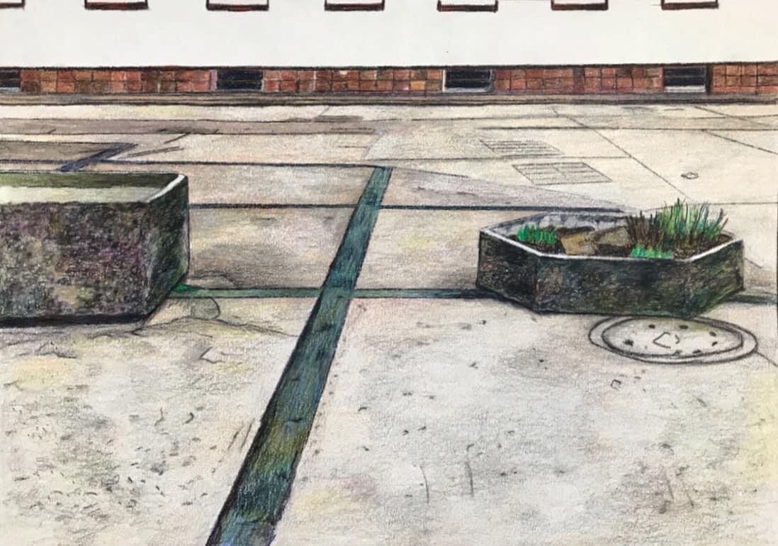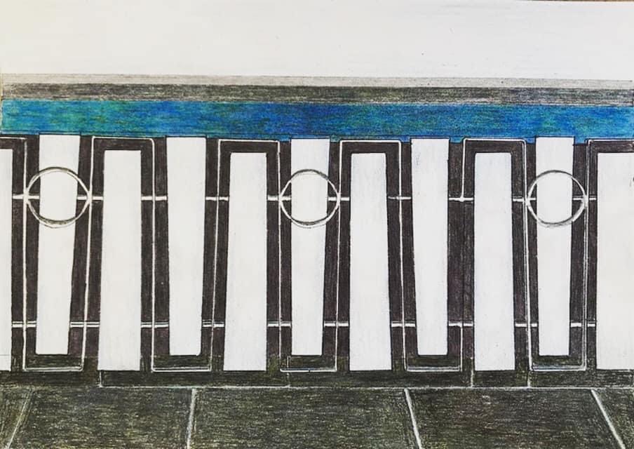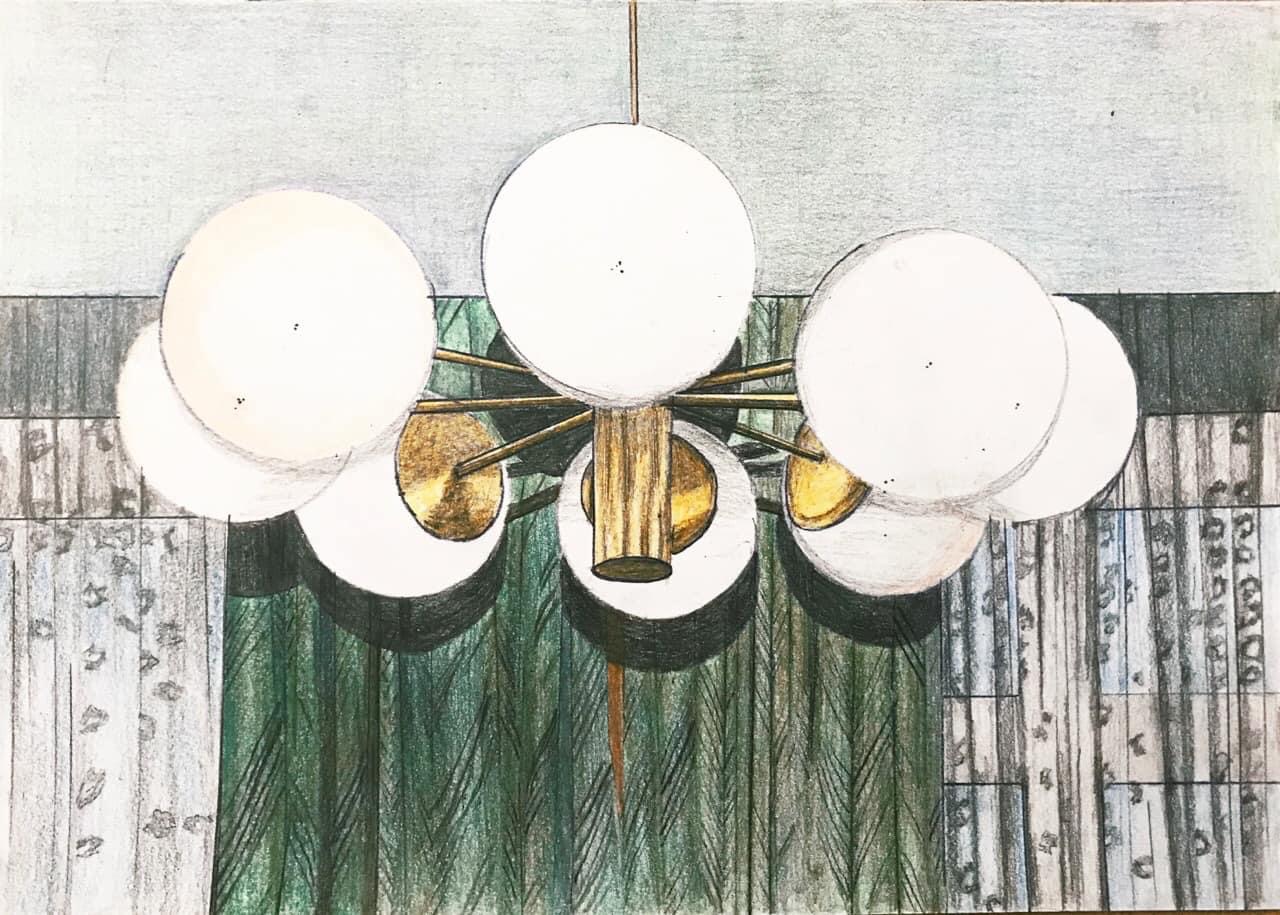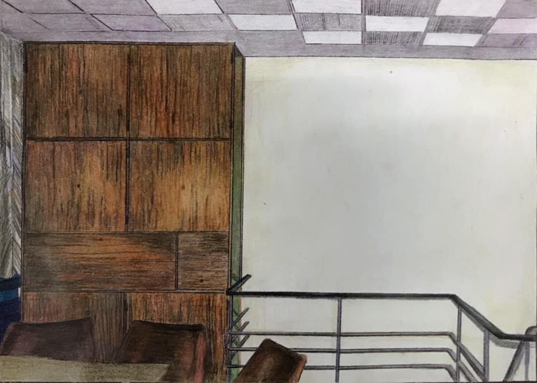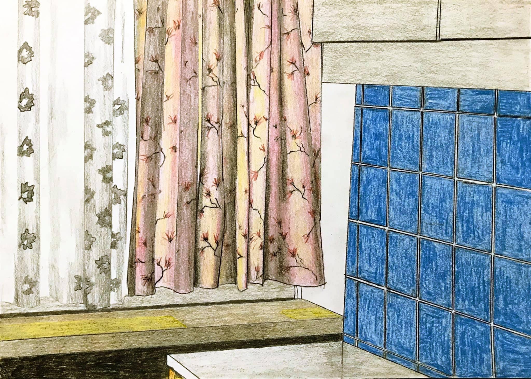 Die Zeichnungen gehören zu einer Serie von 30 Zeichnungen „Stasizentrale Nr. …“ und sind nach Abbildungen gezeichnet, die Andrea Pichl in der Stasizentrale fotografiert hat und die Ausschnitte des Interieurs und den Gestaltungsvorlieben der Stasi in der DDR zeigen.
